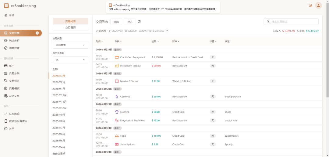 个人财务管理:适用于个人用户管理日常收支,跟踪预算执行情况,进行财务规划和分析。家庭记账:家庭成员可以共同使用,记录家庭开支,了解家庭财务状况。小型企业/个体户记账:对于资源有限的小型企业或个体户,提供了一种经济高效的财务管理解决方案。隐私保护需求:对于注重数据隐私和安全的用户,自托管的方式确保了数据的完全控制。