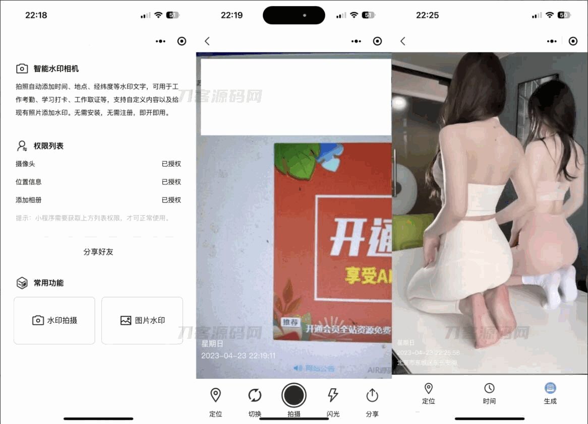 智能水印相机微信小程序源码 支持自定义内容 照片添加水印