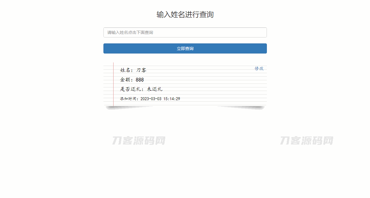 4爷资源网 » 结婚办喜事份子钱礼金记账查询系统源码