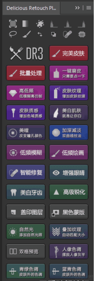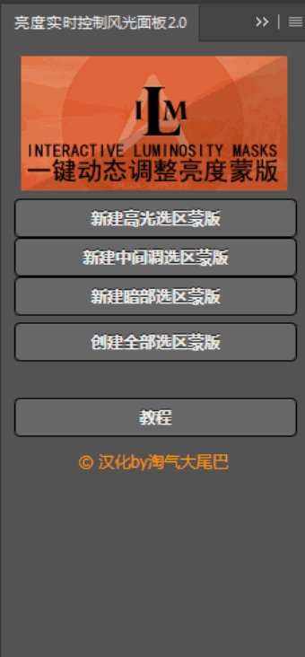 不知道是哪位大神做出来的,把我们熟知的DR3/UR3/ILM亮度蒙版都融合了在一起!是一款功能很强大的PS扩展面板插件。具体功能使用请自行百度。