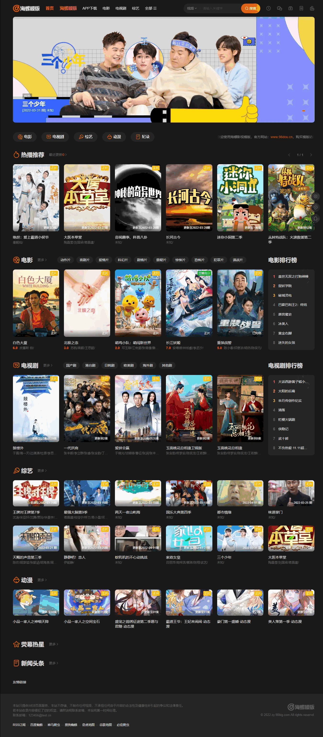 4爷资源网 » 2022新版海螺影视主题模板M3.1全解密版本 多功能苹果CMSv10自适应主题