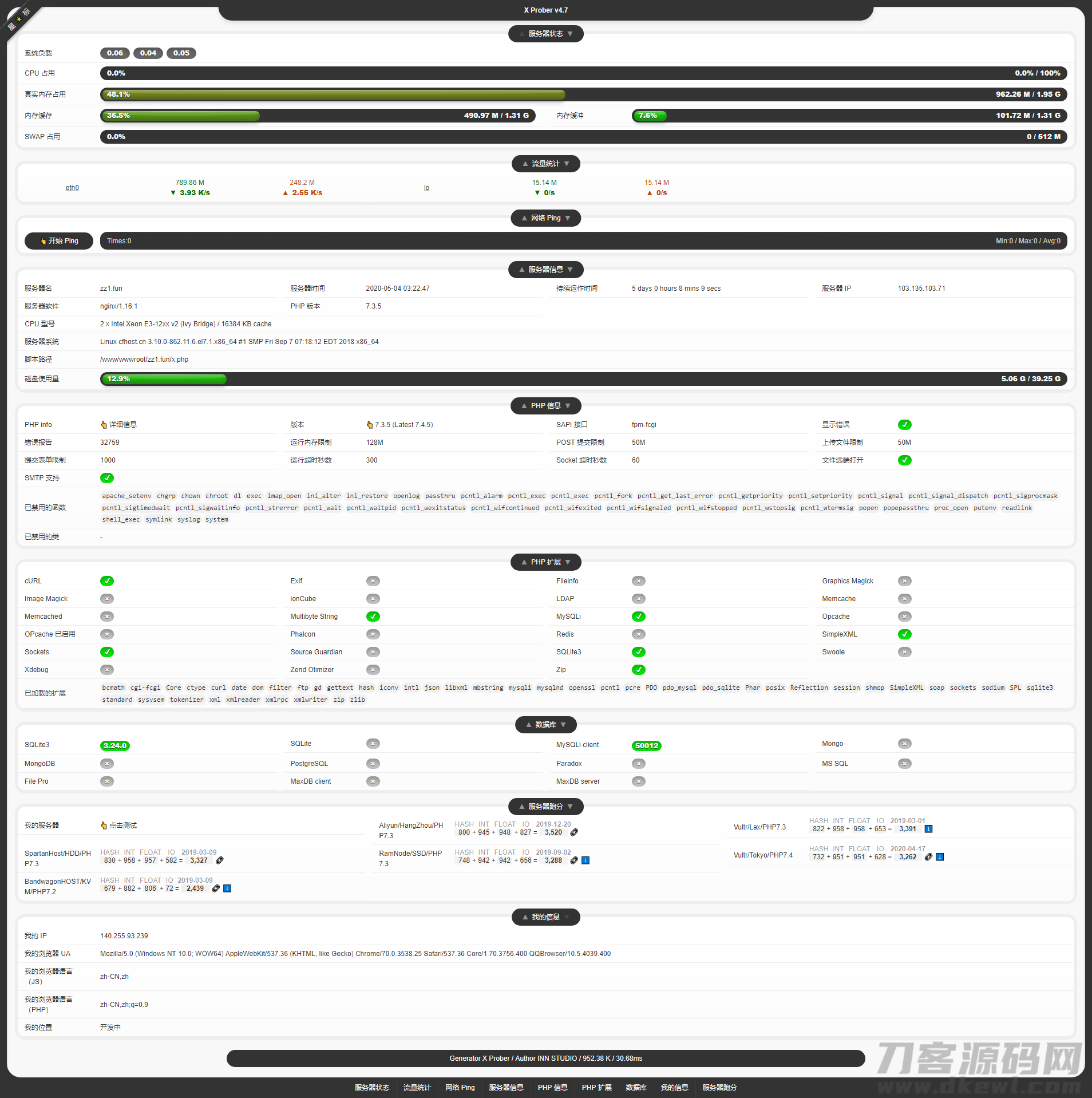前两天看见有人分享服务器的状态页面,之前本人用的是ServerStatus,我发现这个免费开源PHP探针——x-prober更加精致好看。
