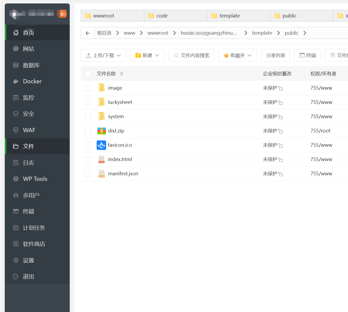 然后打开宝塔面板,切换到OA网站的发布目录下: