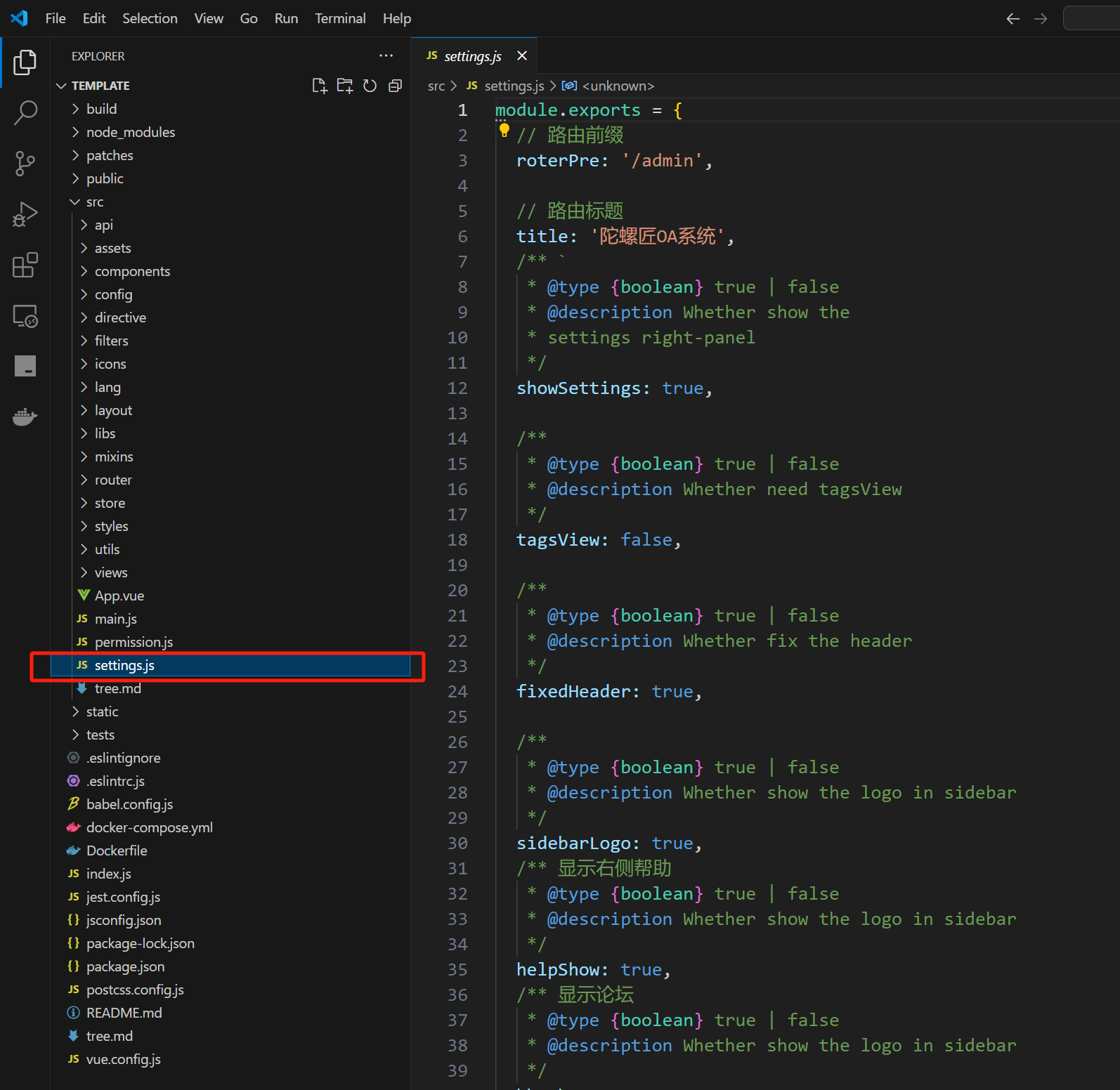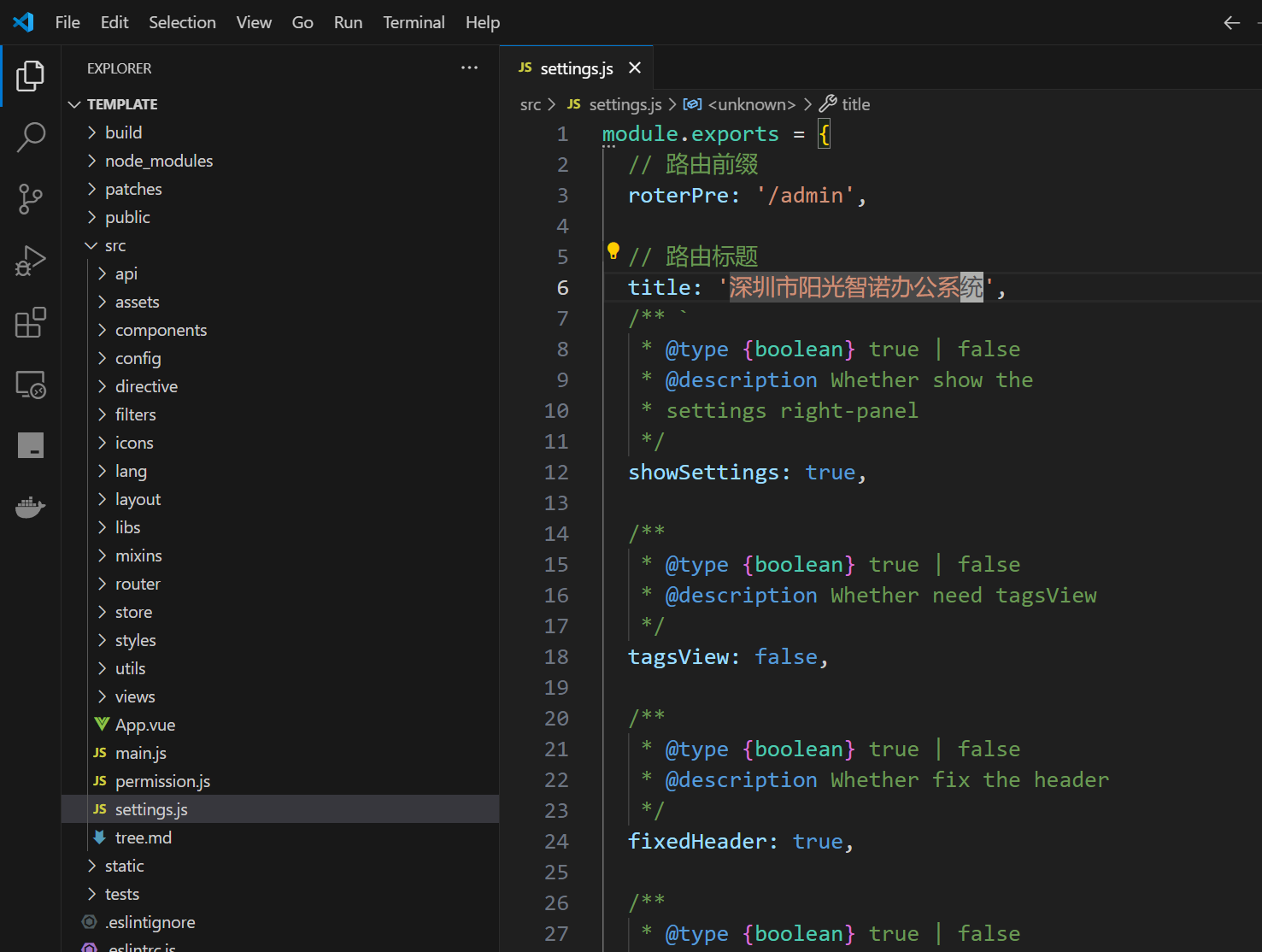 4. 修改默认系统标题。先用VSCODE打开template目录。