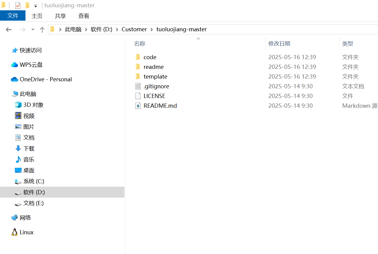 如果还没有代码,请先下载好代码: https://gitee.com/ZhongBangKeJi/tuoluojiang/repository/archive/master.zip 。初始目录如下: