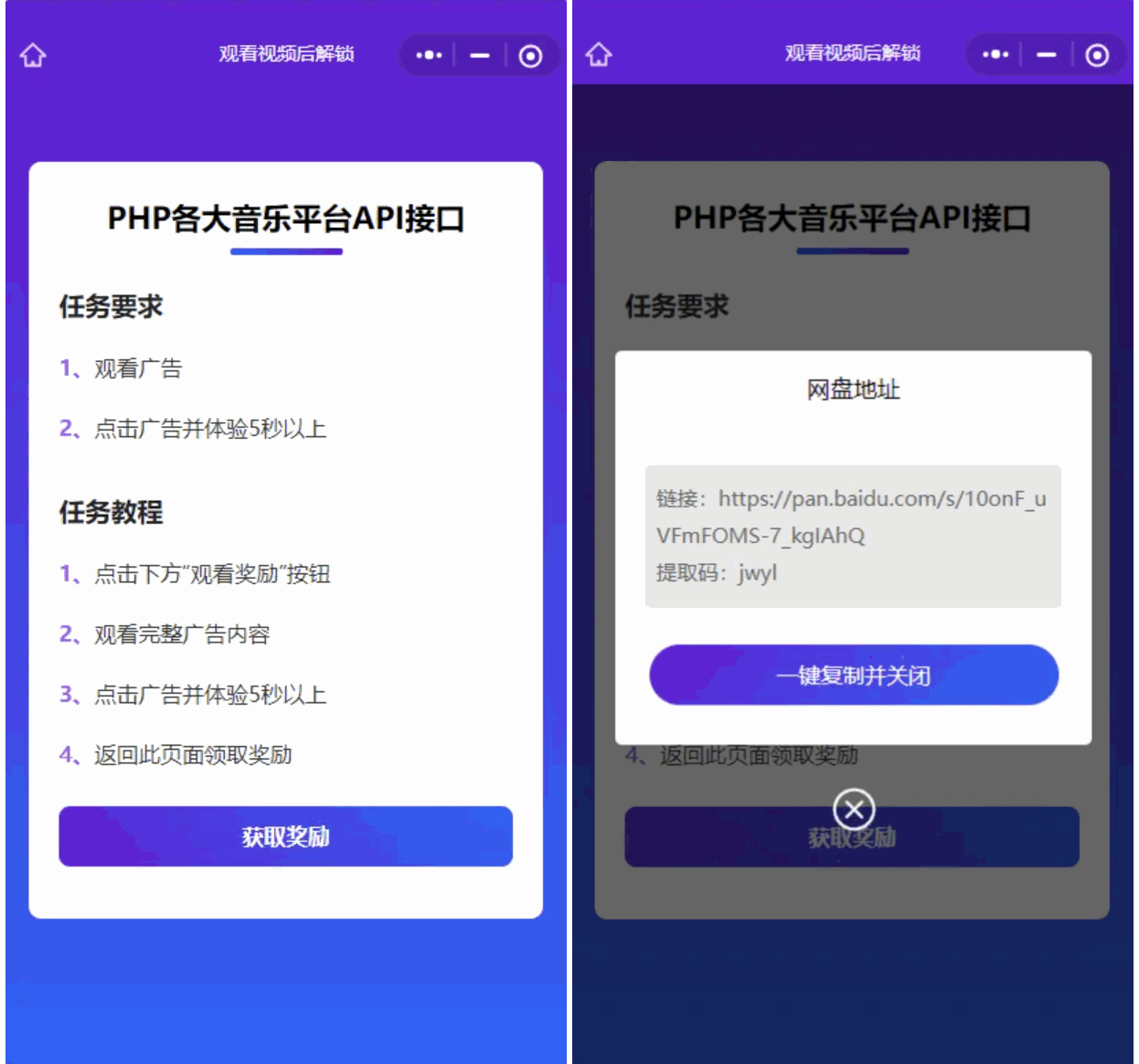 和资源变现差不多,就是让用户观看广告获取想要的资源或者其他东西