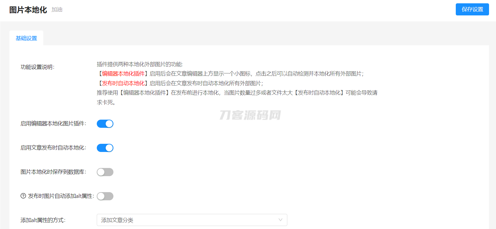 启用之后会给新增两个功能:编辑器增加在前端本地化外部图片的插件和文章保存时在后端自动本地化外部图片的功能(区别在于一个是发布前本地化和发布后本地化)。