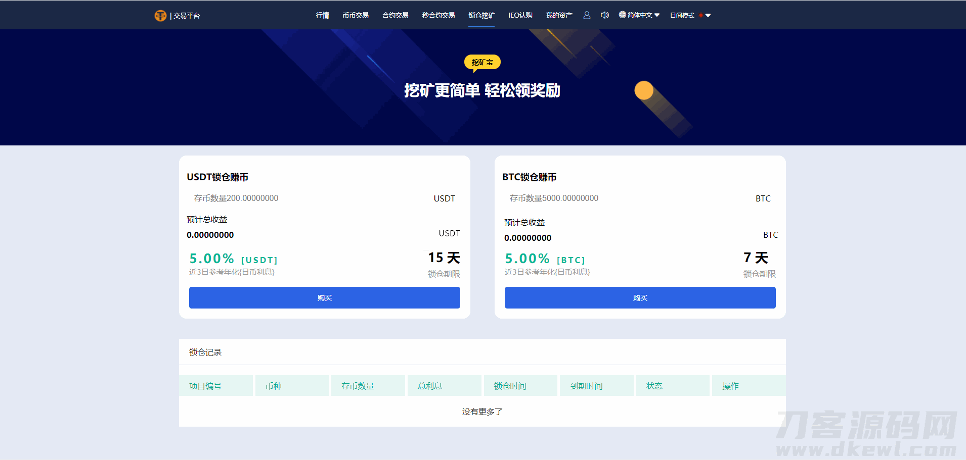 【虎年福利】多语言交易所/12国语言/秒合约/申购/锁仓/K线完整/脚本最全/带教程/日夜模式