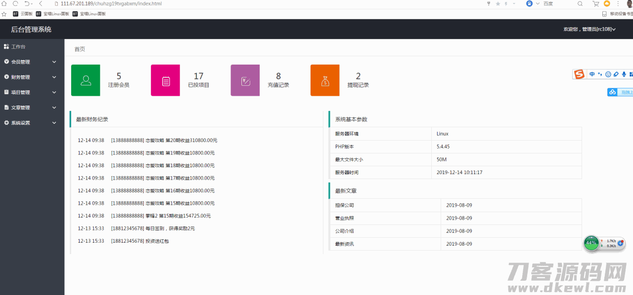 【金融理财系统】每日返利+影视投资+投资理财+积分商城+免签约支付系统+完美运营