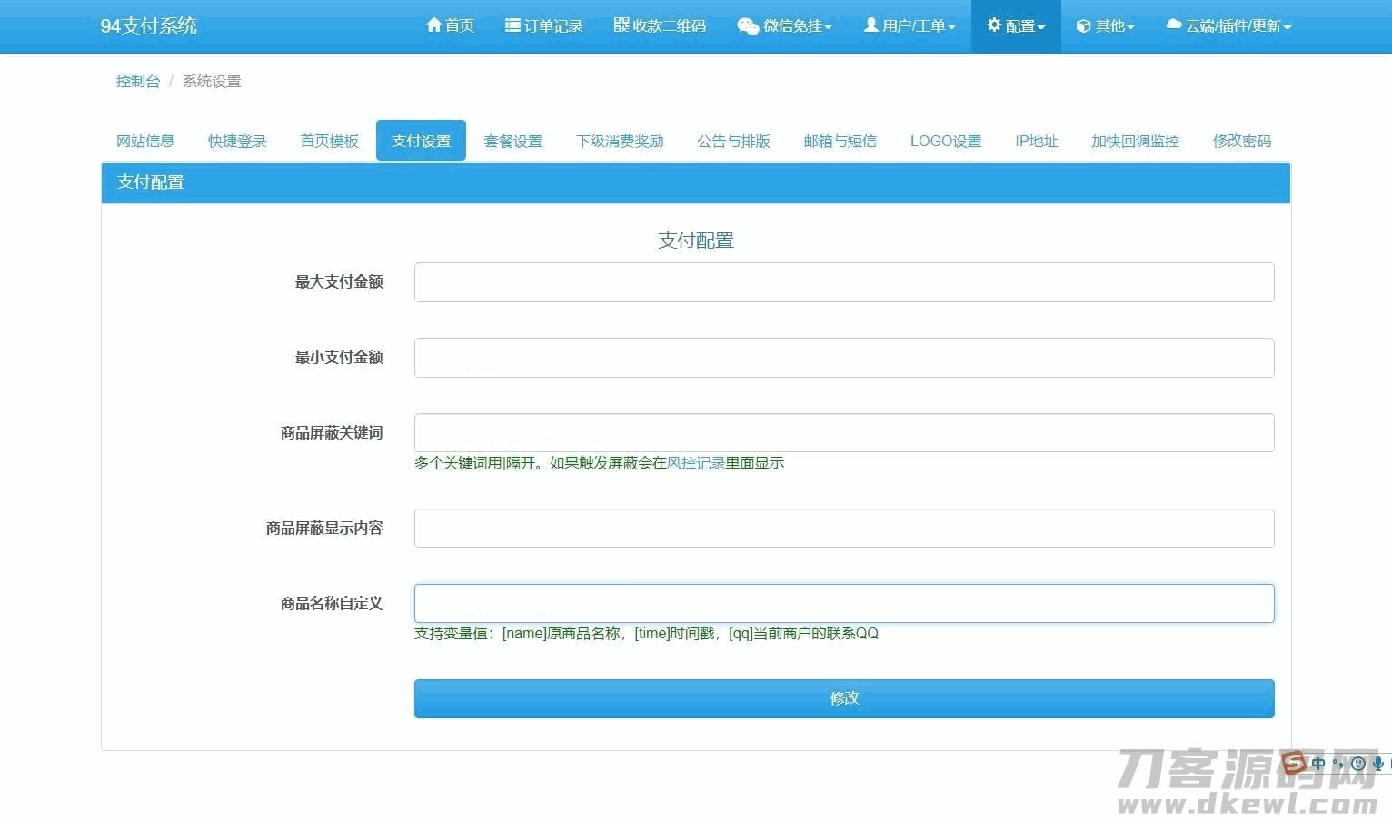 接下来去支付设置里面配置你的邮箱,等下下载更新包需要用到