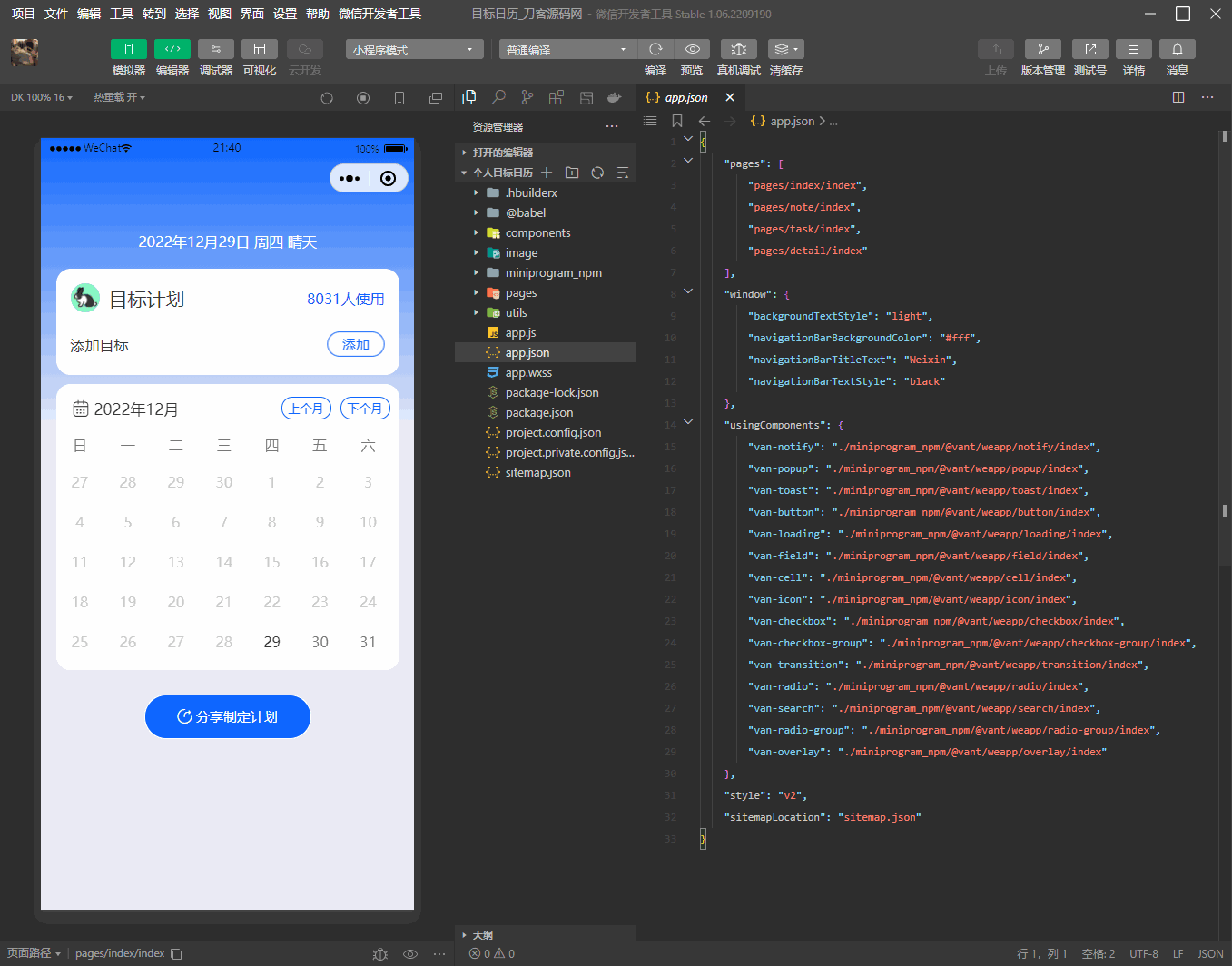 个人目标日历定制制作小工具微信小程序源码