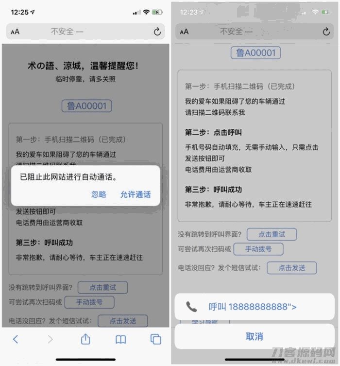 4爷免费源码网 » 临时停车自动拨号和自动发短信html源码