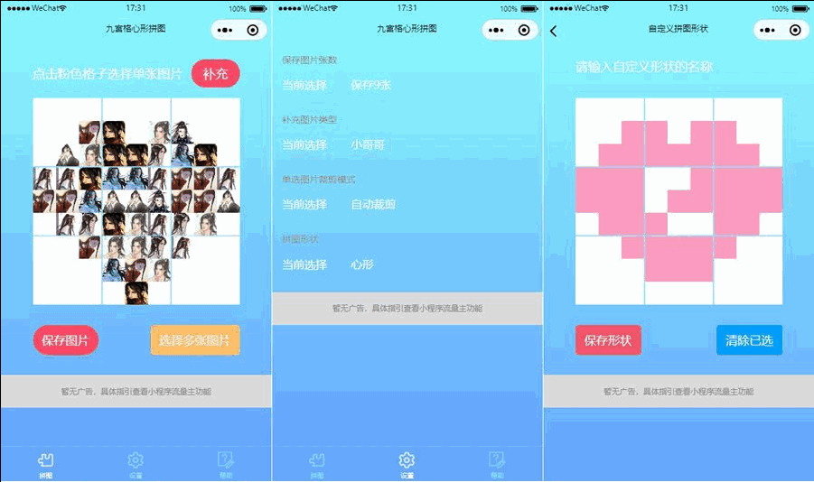 九宫格心形拼图小程序源码带流量主微信小程序源码