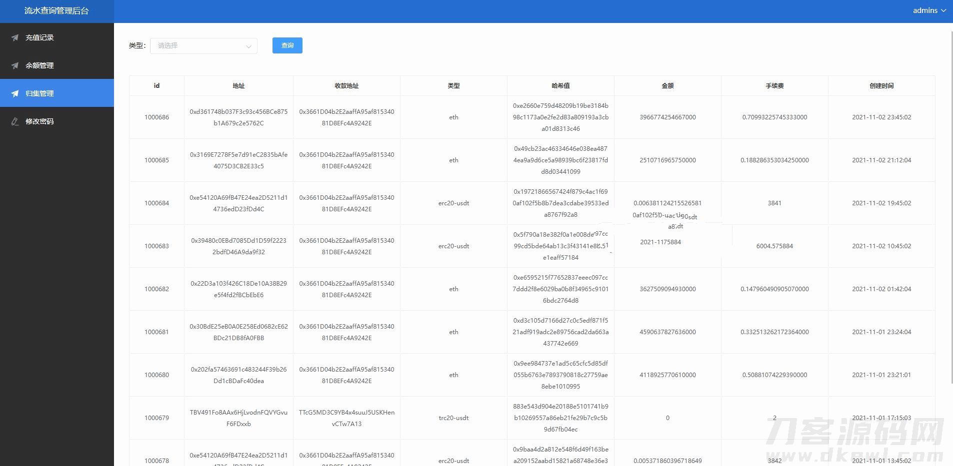 二开版流水查询系统/虚拟币查询多方式提币系统源码下载