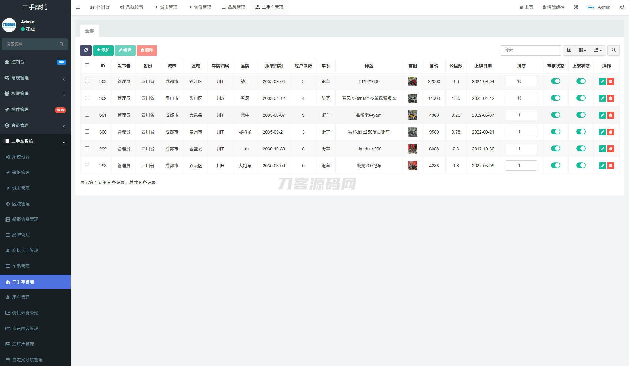 4爷免费源码网 » 二手摩托车展示小程序源码 独立版 带后台