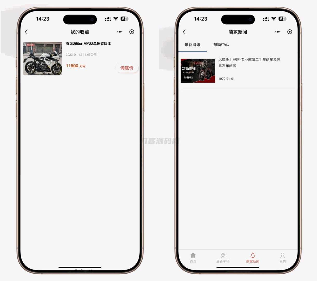 二手摩托车展示小程序源码 独立版 带后台