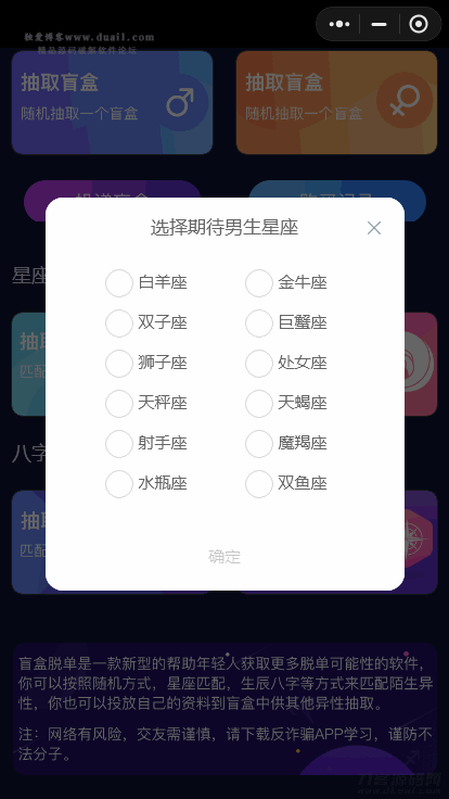 4爷免费源码网 » 交友盲盒小程序版本 全开源版本kxdao首发