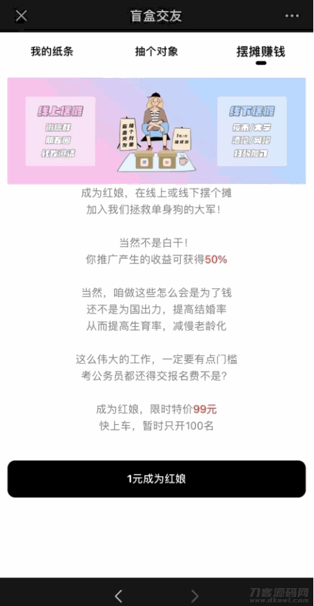 近期爆火的模式,无压力付费交友,由线下摆摊兴起,已被验证成功的交友模式。