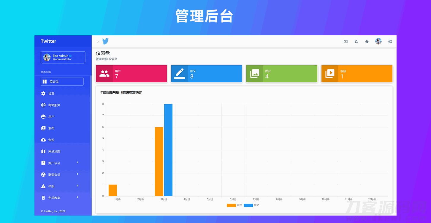 仿Twitter源代码 社交网络源码 基于脉聊二开版本这是一款类似于Twitter网站的源代码。利用原代码,你可以快速搭建自己的社交网络平台。程序语言是PHP。数据库采用Mysql。与此同时系统带有注册,评论,转发等功能。注册用户可以分享他