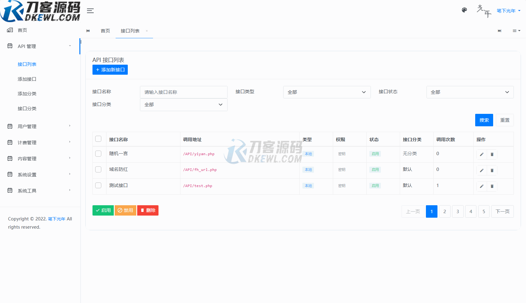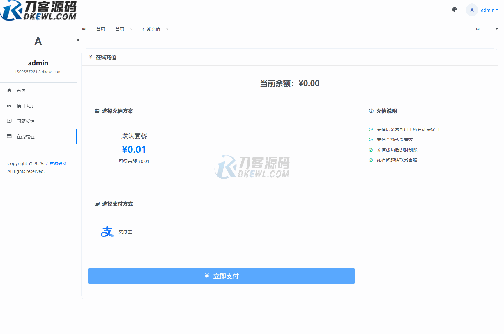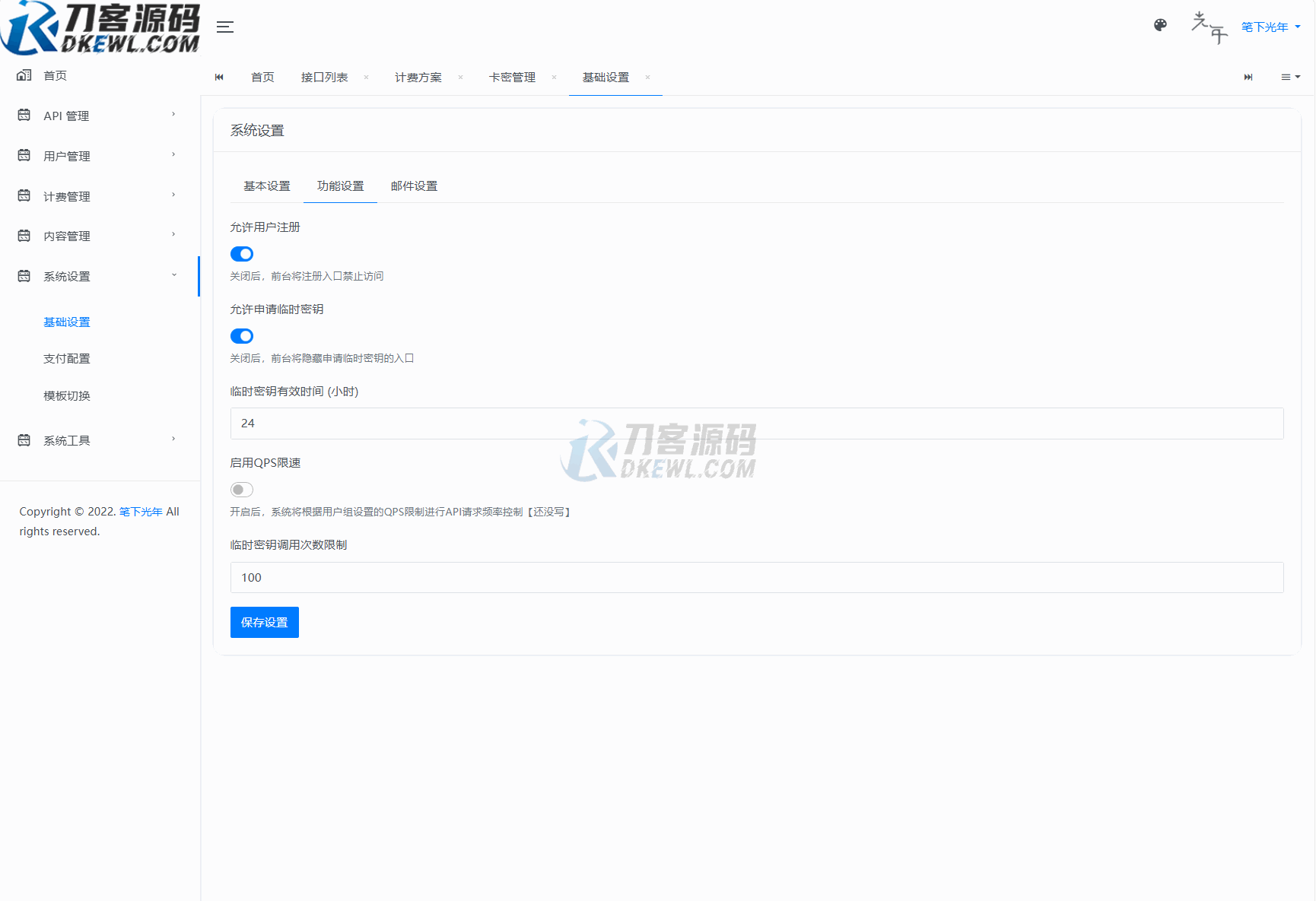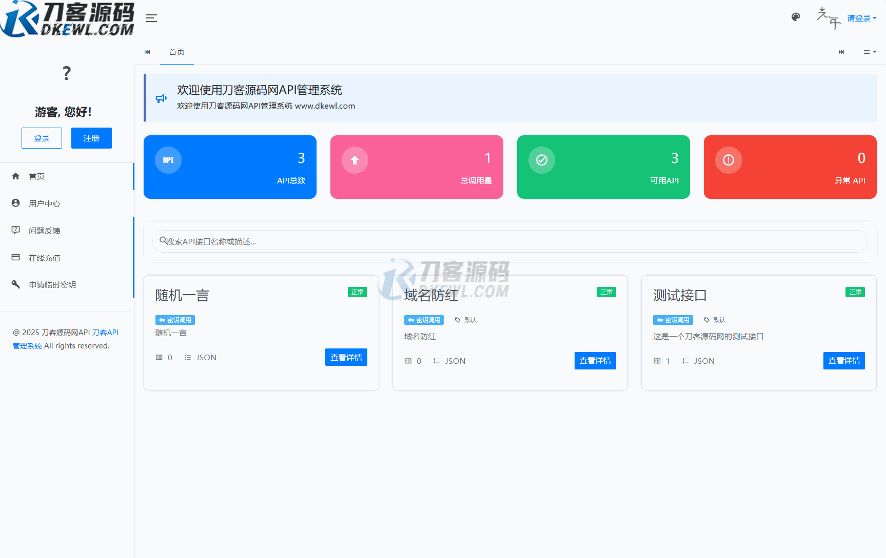 4爷免费源码网 » 全新二开版刀客API管理系统源码 API计费 全开源