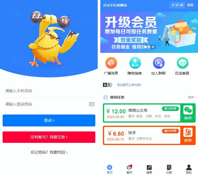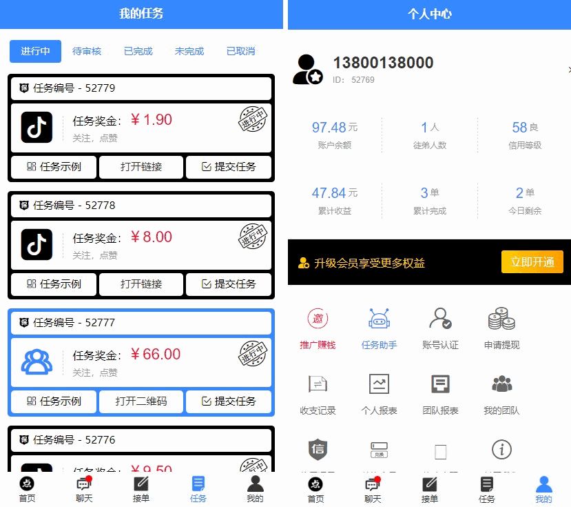 全新蓝色UI点赞任务系统源码+后台模板【无加密+去后门】