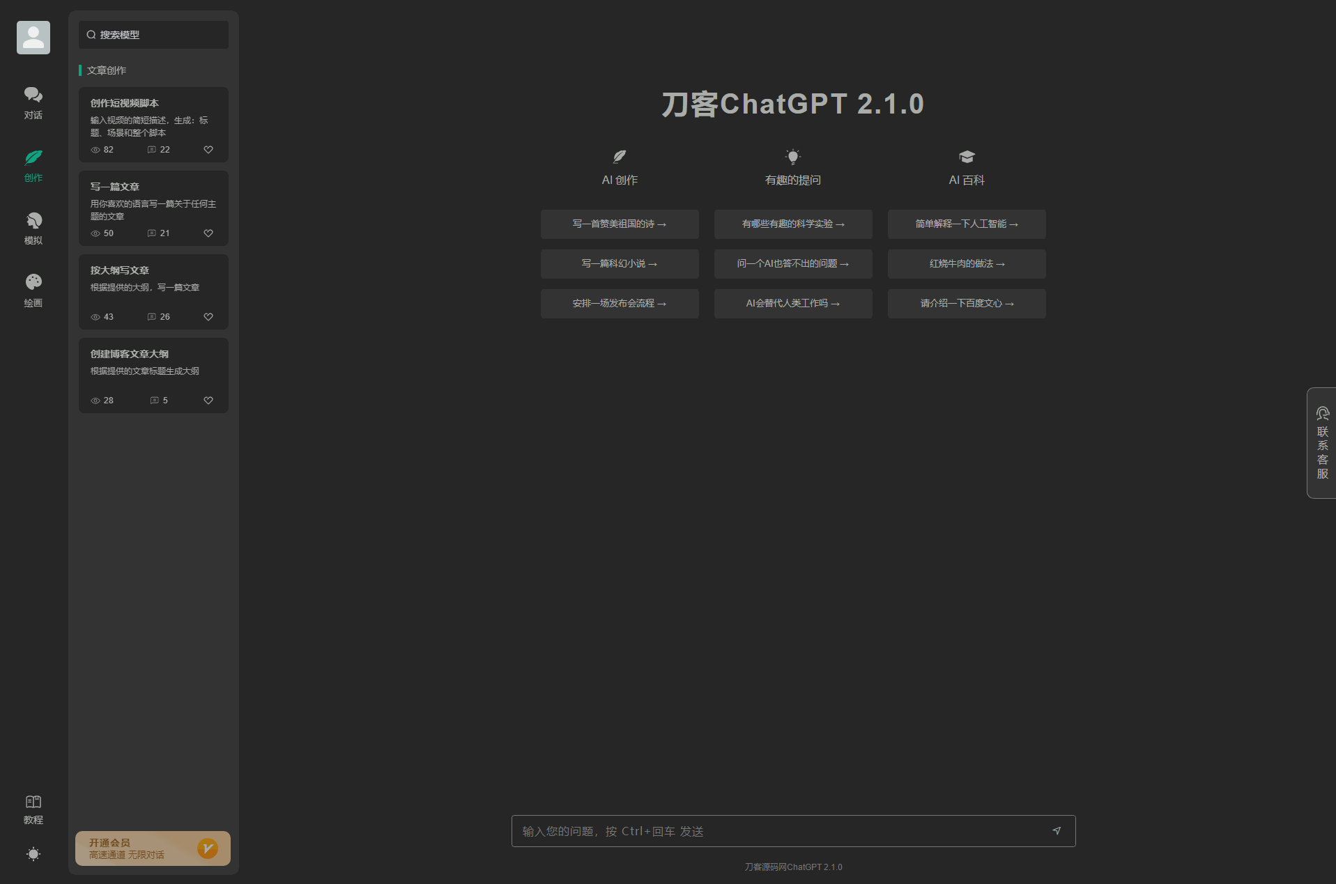 4爷免费源码网 » 全新ChatGPT付费创作系统源码V2.1.0独立版 WEB端+H5端+小程序端