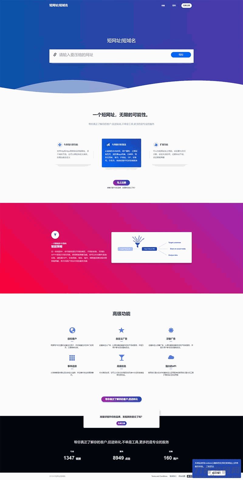 专业的短网址源码,完整的后台管理、功能齐全的用户面板、用户系统、社交分享、短网址统计、短网址自定义、多国语言支持、社交分享以及API系统等。
