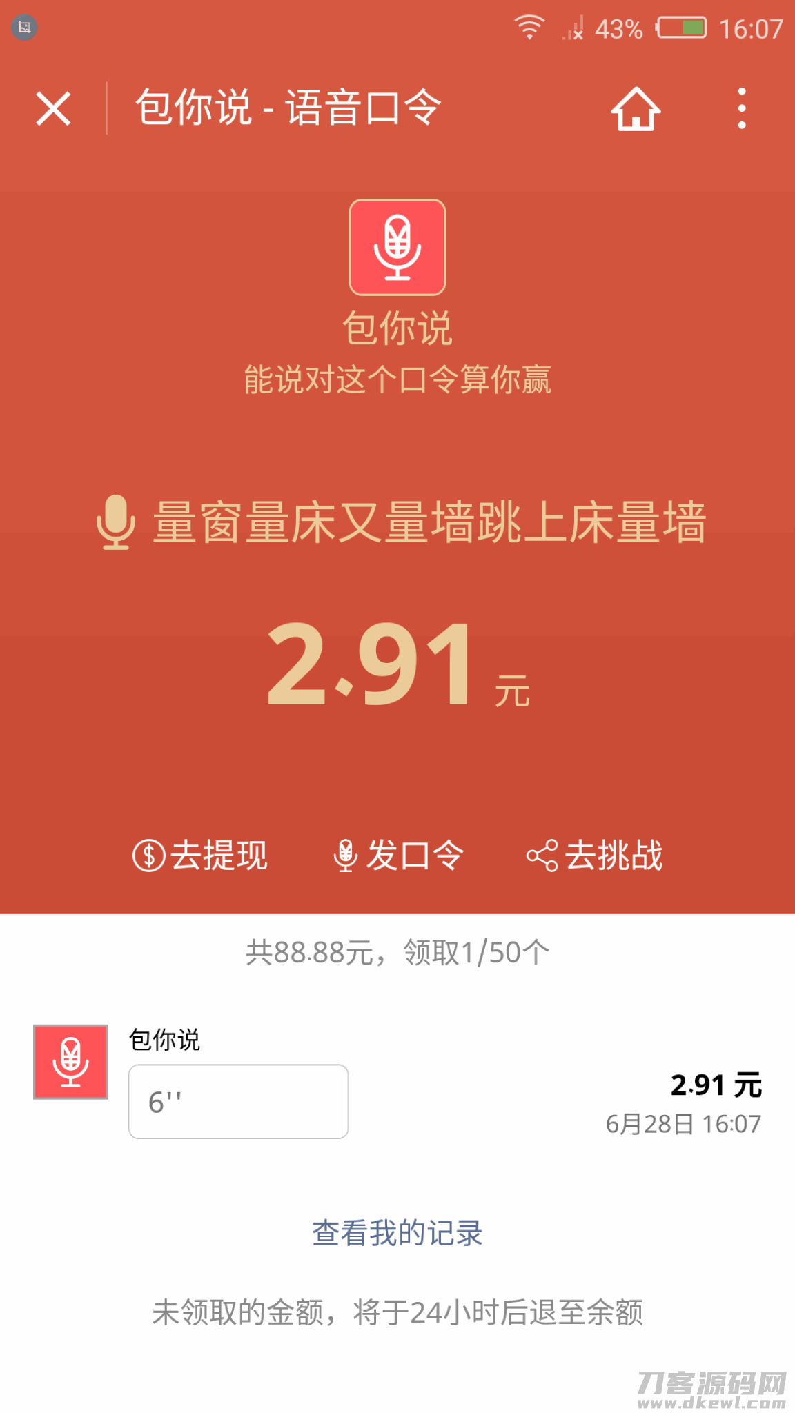 4爷免费源码网 » 包你说语音红包小程序运营版