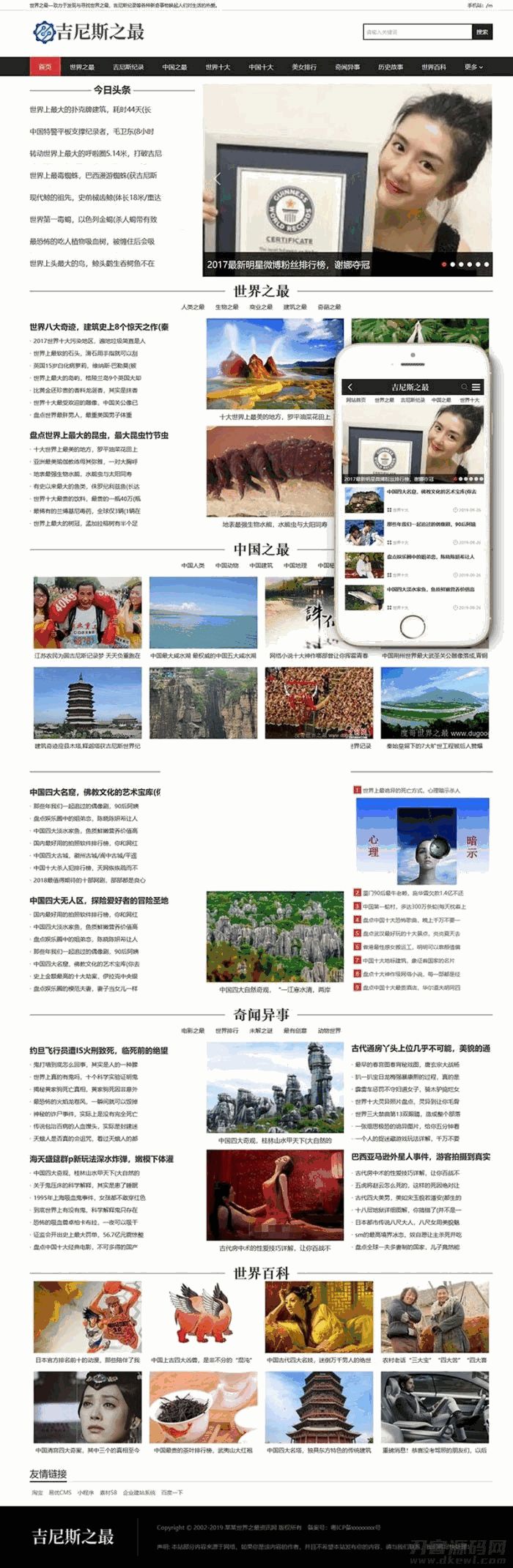 吉尼斯世界纪录新闻资讯类网站模板(带手机移动端)