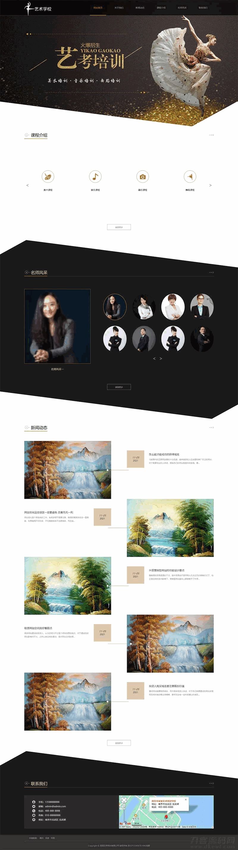 4爷免费源码网 » 响应式艺考培训学校类网站pbootcms模板 html5艺术培训机构网站源码下载