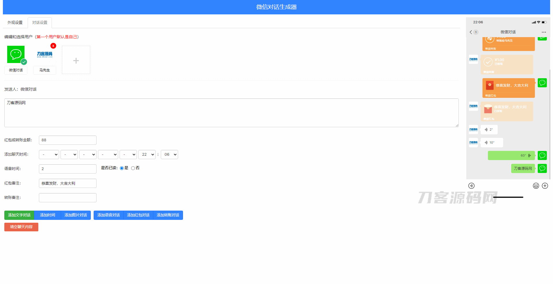 在线微信对话生成器源码,抖音微信聊天搞笑视频制作神器