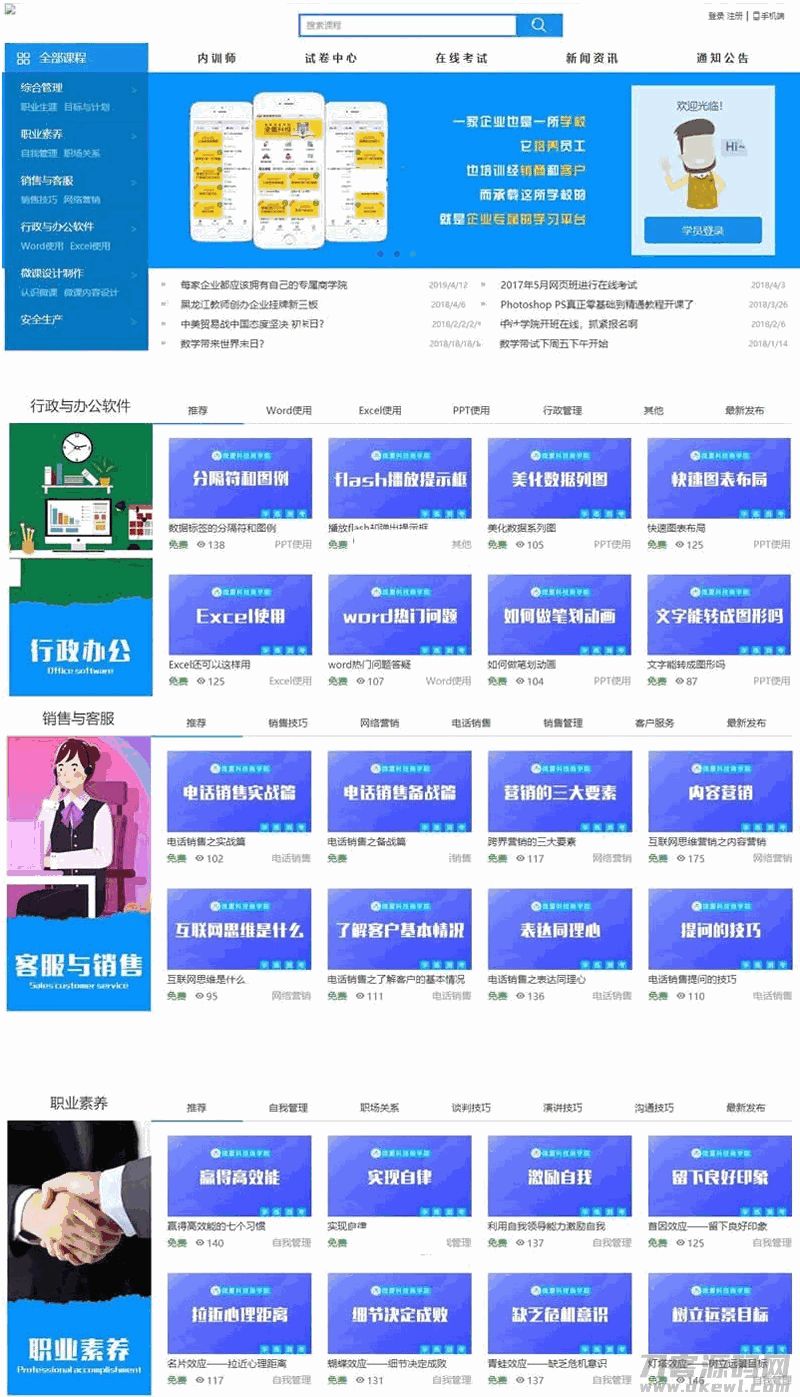 1、该软件属于企业通用、html5 响应式、在线教育、在线培训类企业使用,一款适用性很强的网校系统,基本可以适合各行业的企业商学院!