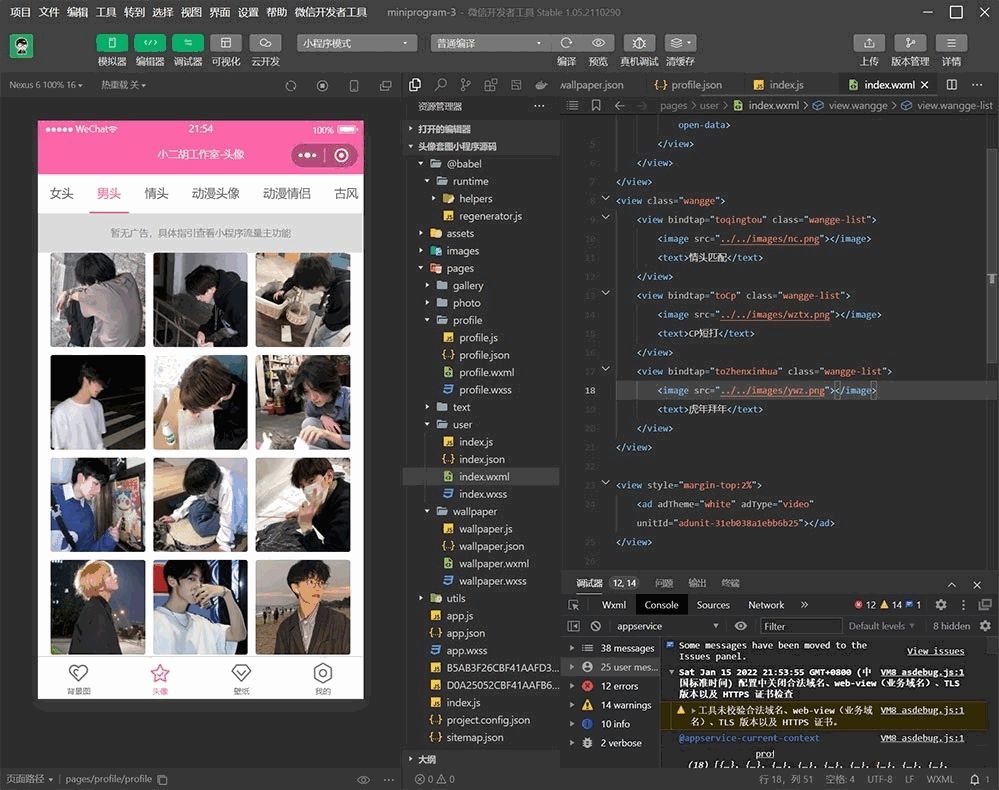 多套头像/壁纸/背景图资源微信小程序源码 粉色UI 带流量主