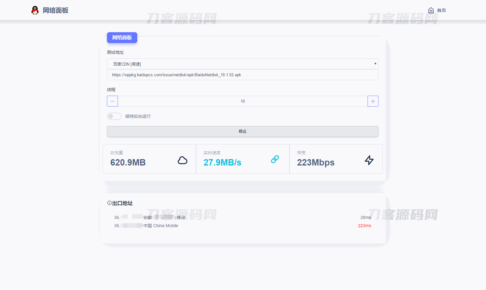 4爷免费源码网 » 多线程在线检测网速流量HTML源码