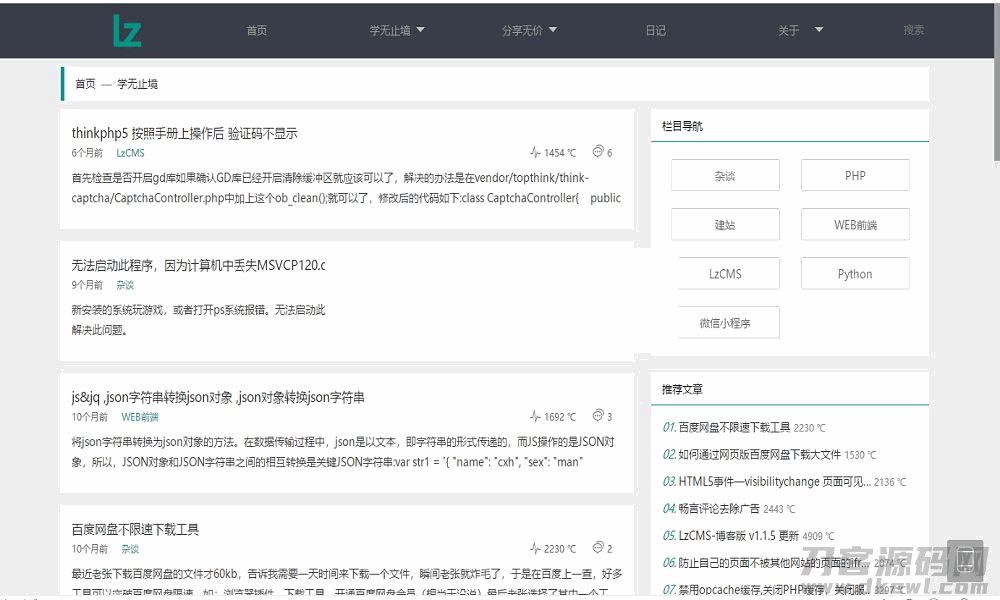 4爷免费源码网 » 大型程序员交流博客系统PHP源码 | Thinkphp5内核框架
