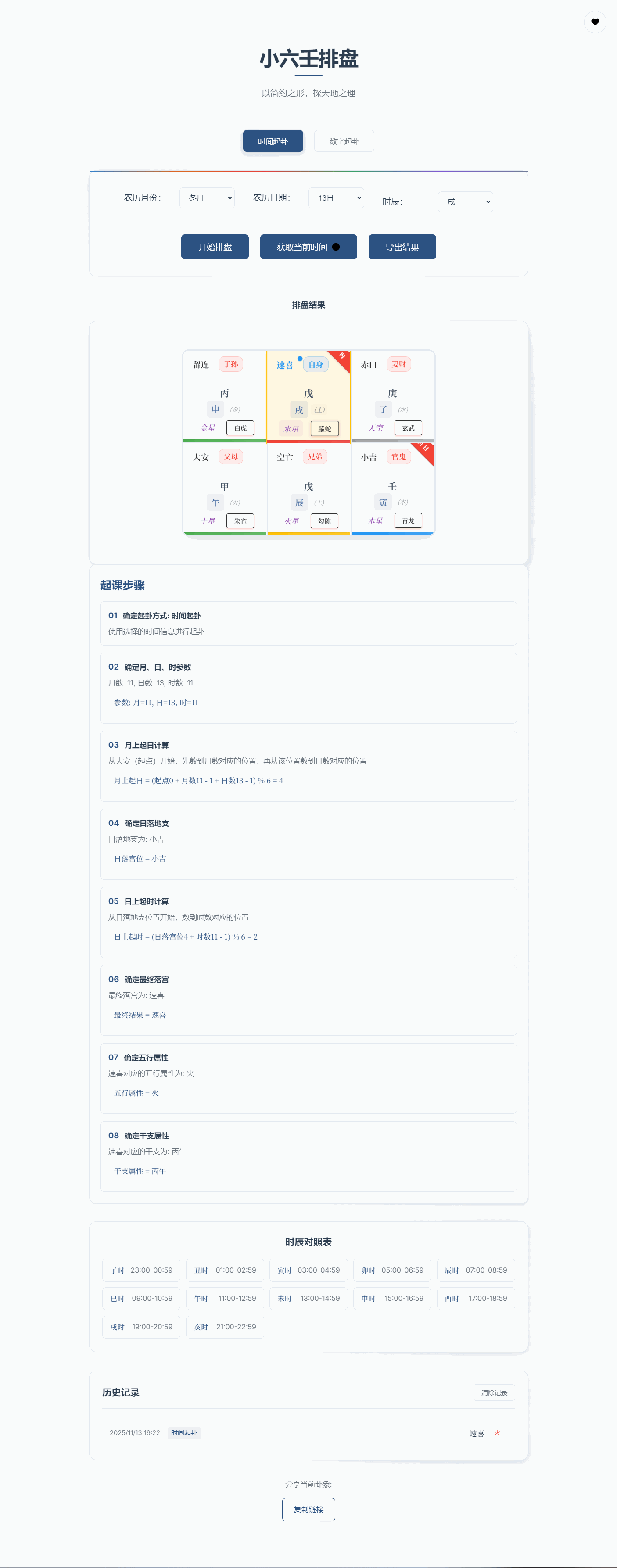 用AI辅助开发了个小六壬排盘网站,现在开源分享