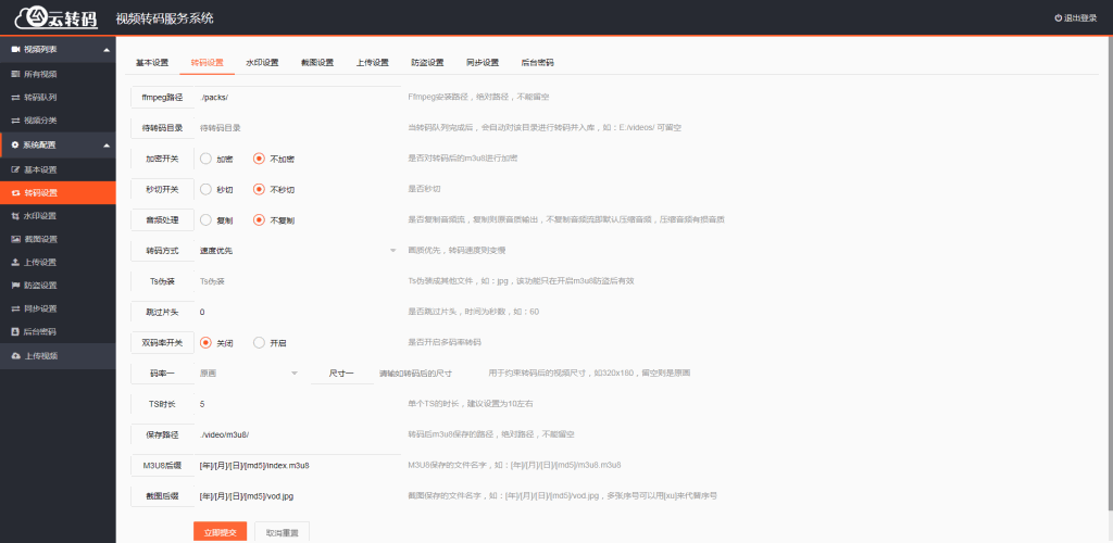 崇胜云转码系统源码,一款在线视频转码系统。