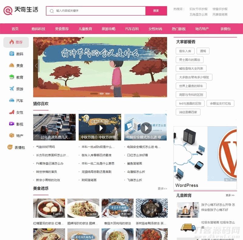 4爷免费源码网 » 帝国cms7.5仿《天奇生活网》生活常识美食女性时尚综合资讯门户网站源码+手机版