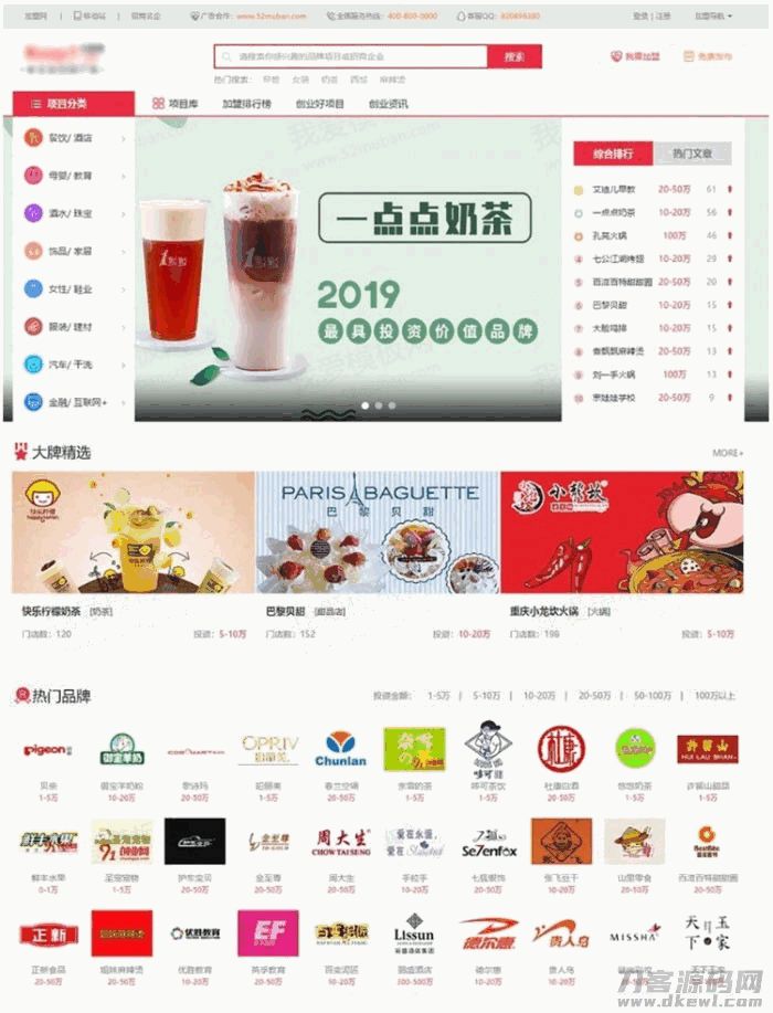 4爷免费源码网 » 帝国cms7.5仿《91创业网》品牌连锁店招商加盟致富商机网站源码