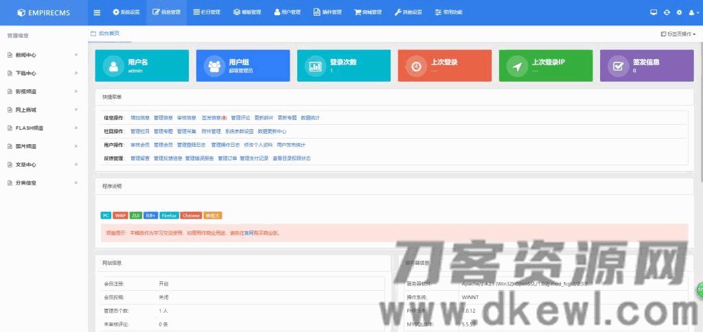 给各位小伙伴分享一款帝国cms的后台模板,帝国cms其实挺好的,只是那个后台,实在是不忍直视,没点功力的朋友看着都头大!这里给大家分享一款帝国CMS美化版的后台,非常的美观大气,重构界面,操作便捷一看就明白怎么使用。包含详细的设置教程。