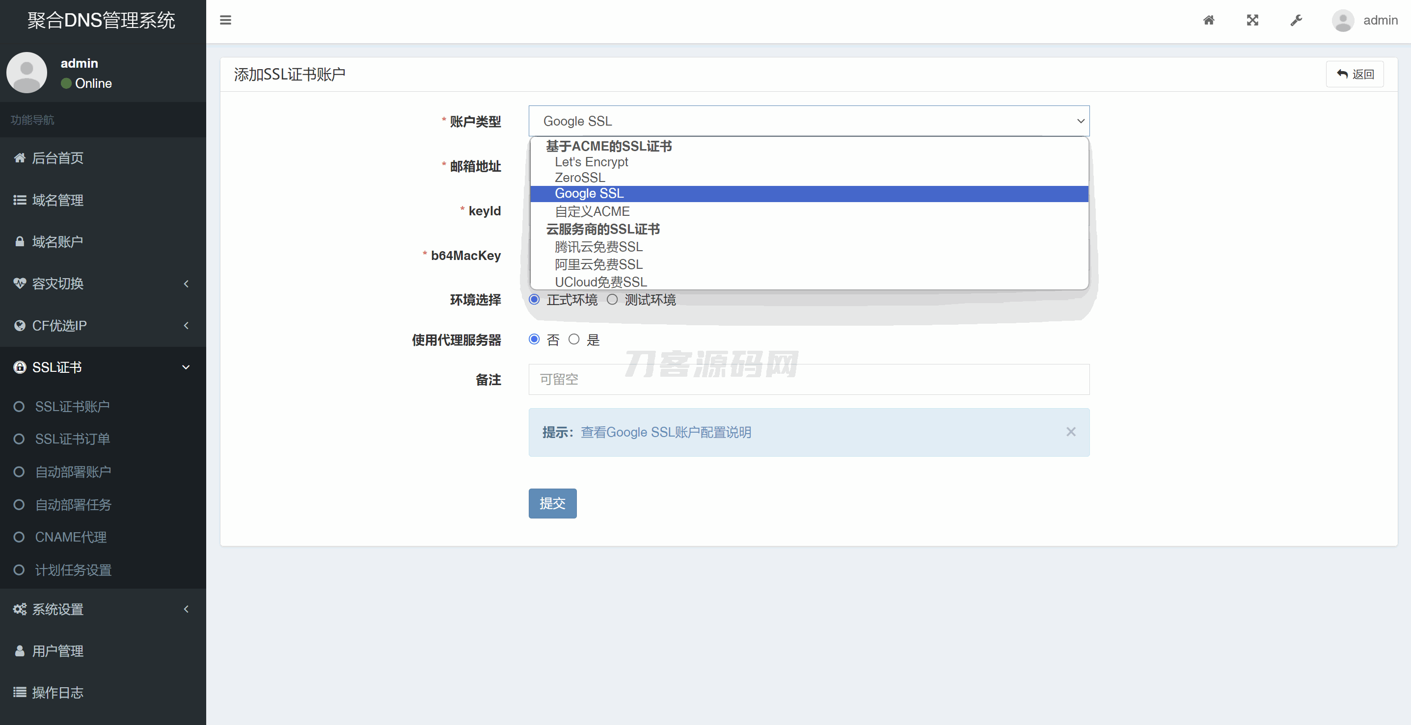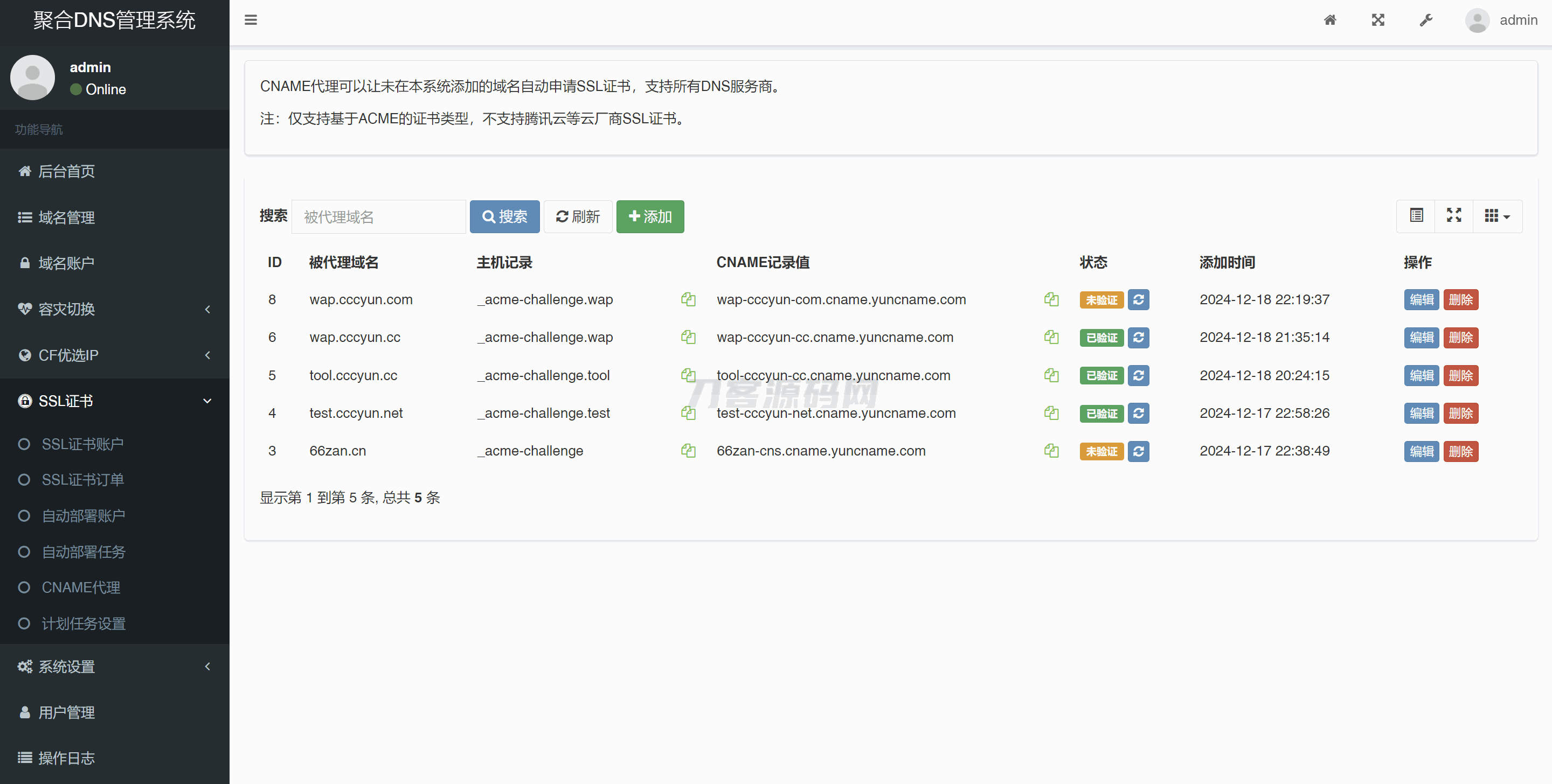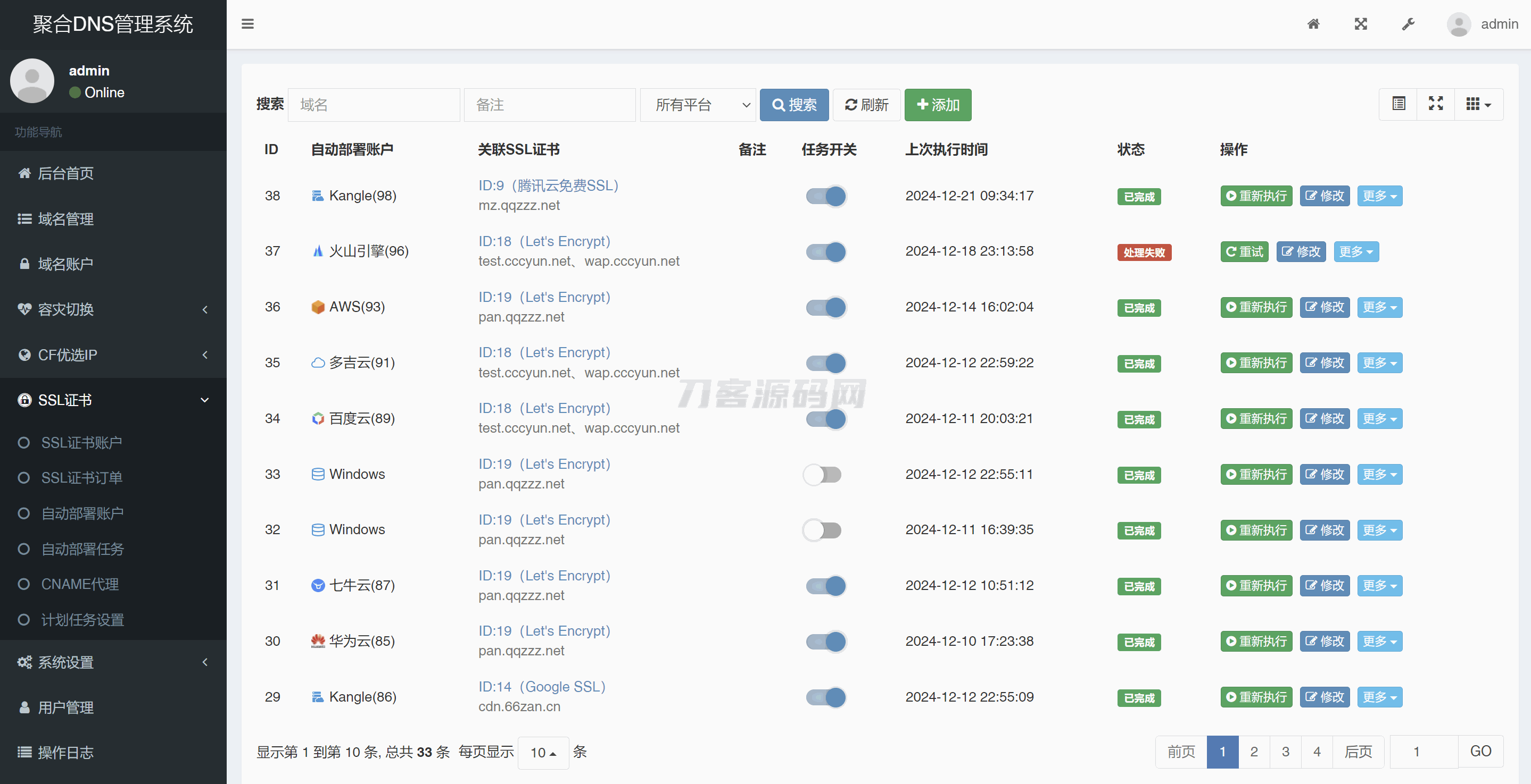 彩虹聚合DNS管理系统源码V2.0.1,SSL证书自动申请与部署