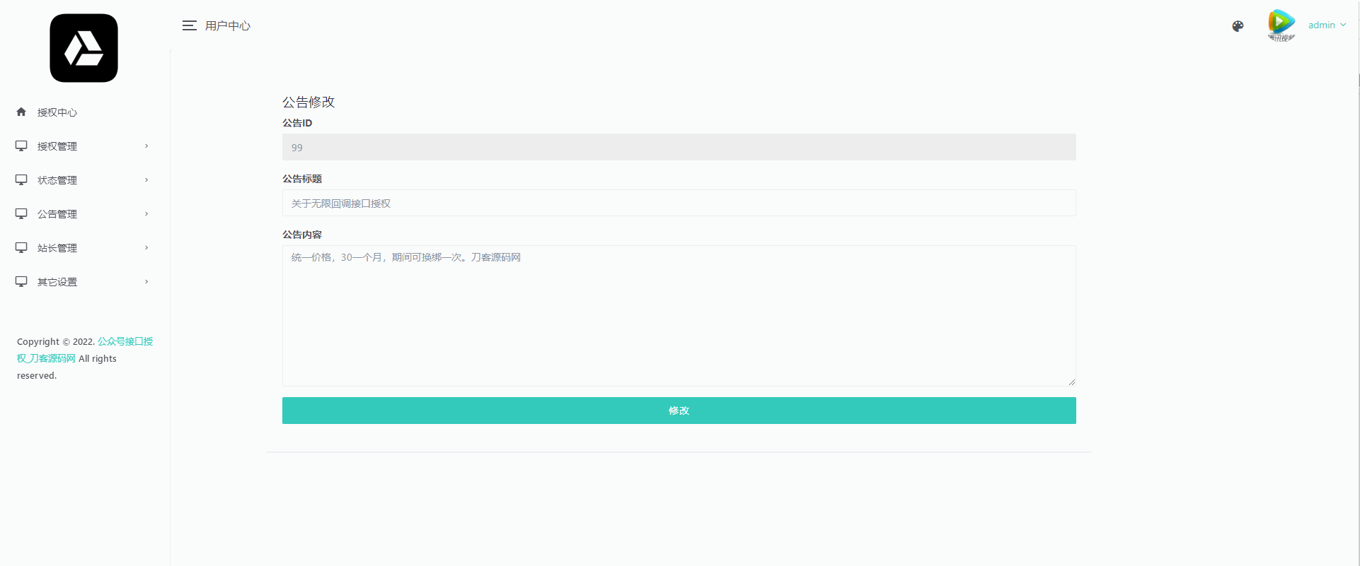 4爷免费源码网 » 微信公众号无限回调授权系统源码 全网首发