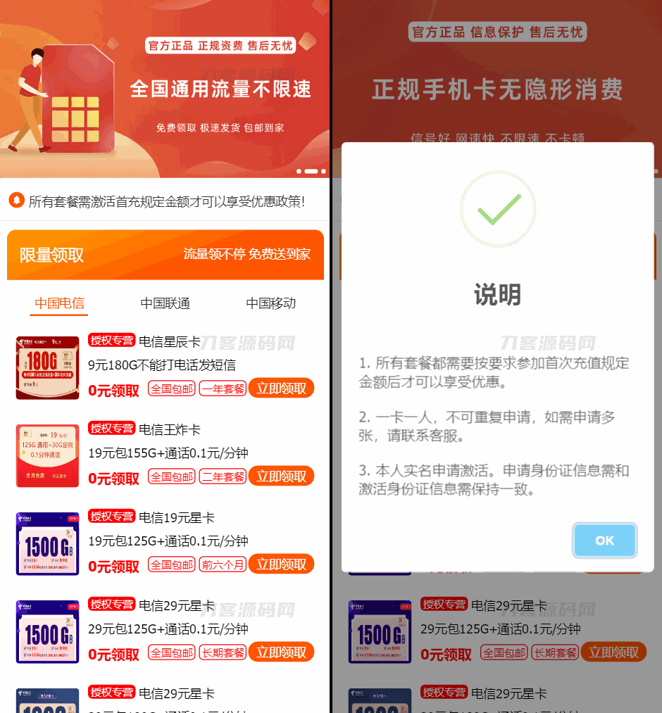 手机卡流量卡 号卡推广单页源码