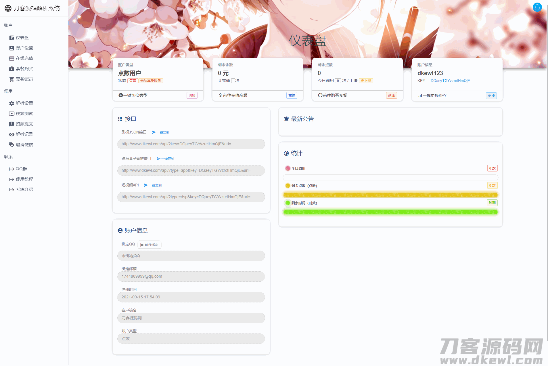4爷免费源码网 » 扶风解析系统/视频解析计费系统/视频智能解析