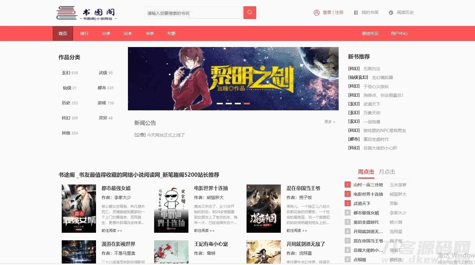 4爷免费源码网 » 新书图阁小说源码服务器打包运营版/带wap手机版完整会员中心/送火车头采集规则