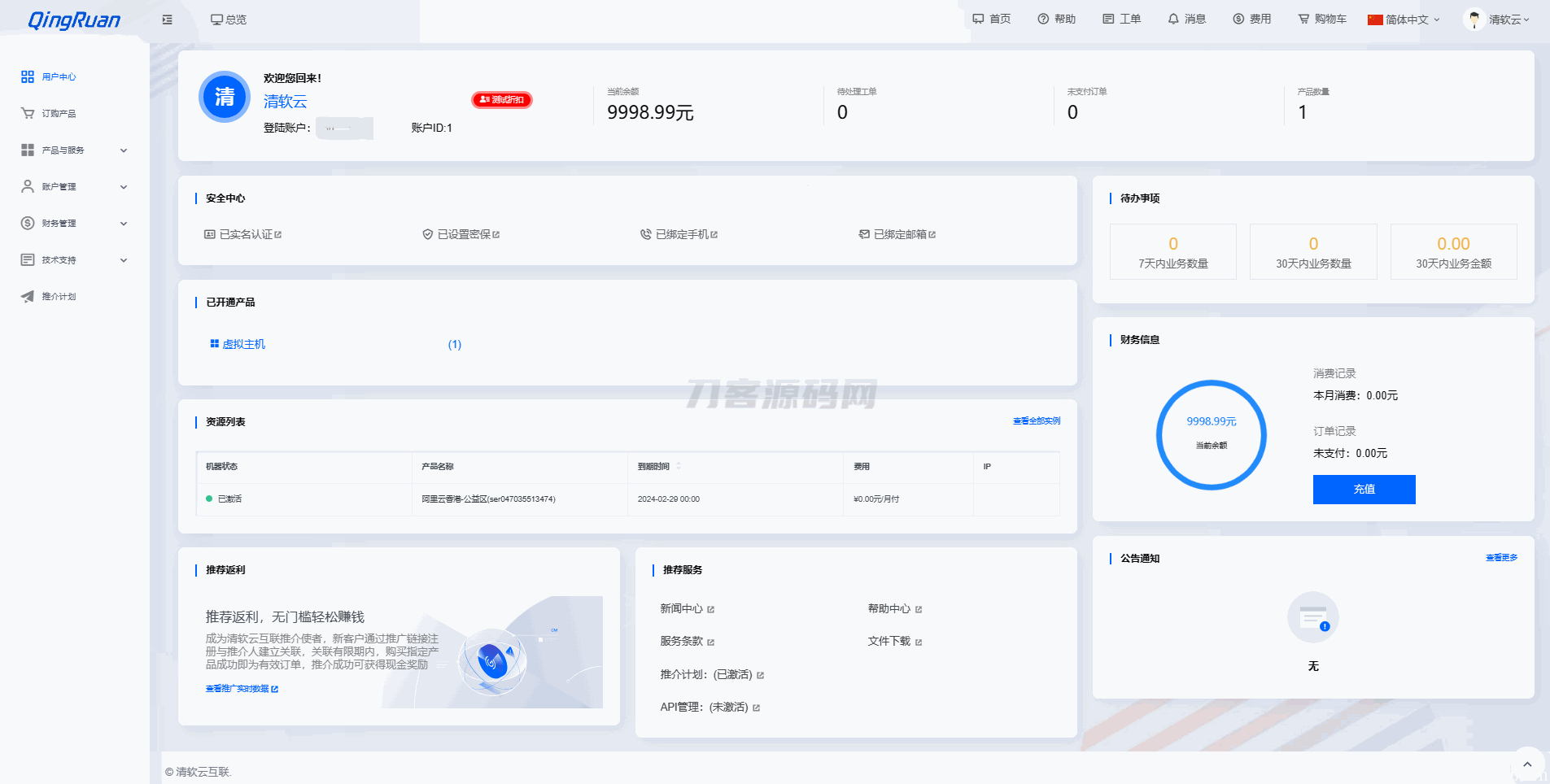 4爷免费源码网 » 新版QRuser用户中心主题 | 魔方财务模板