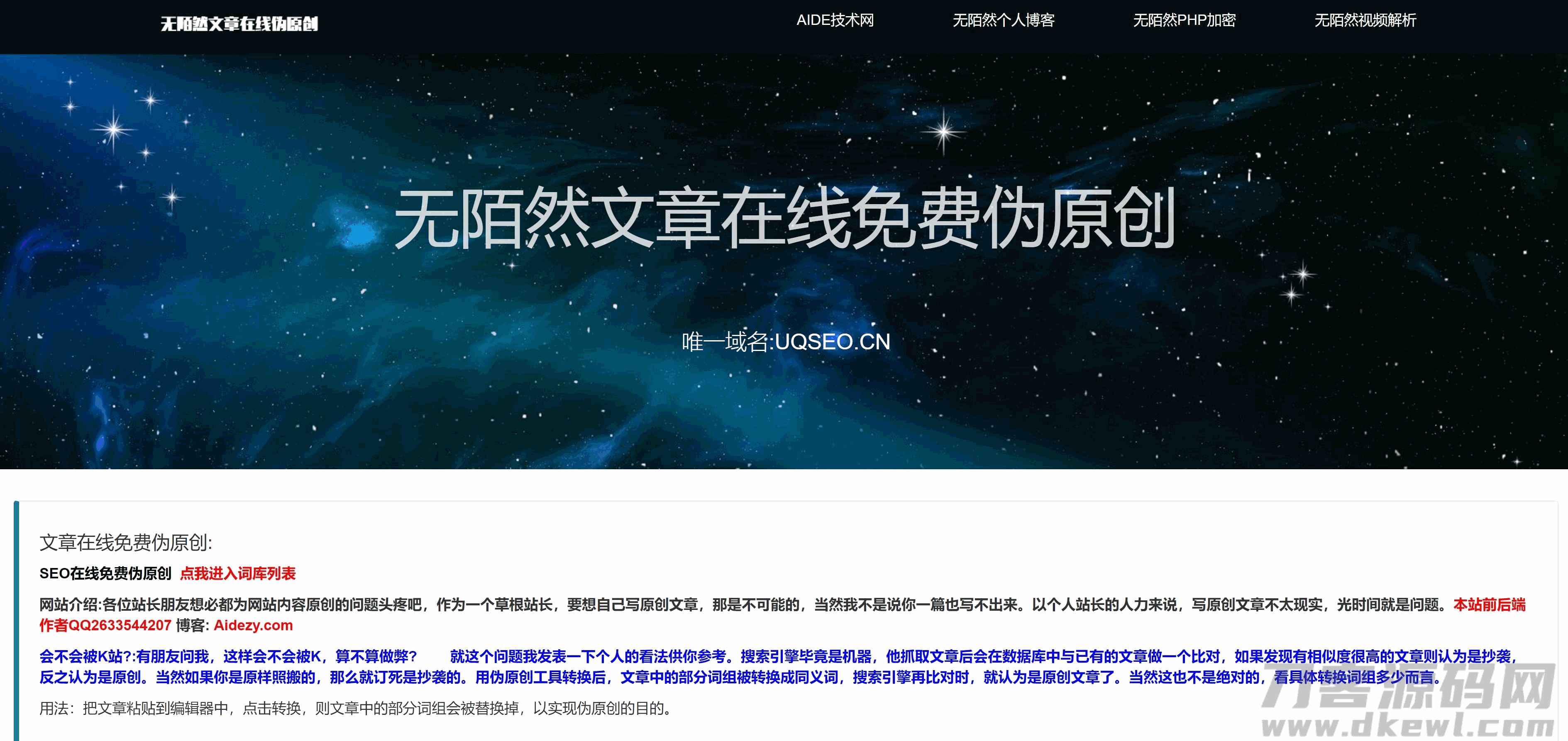 4爷免费源码网 » 无陌然文章伪原创系统程序源码