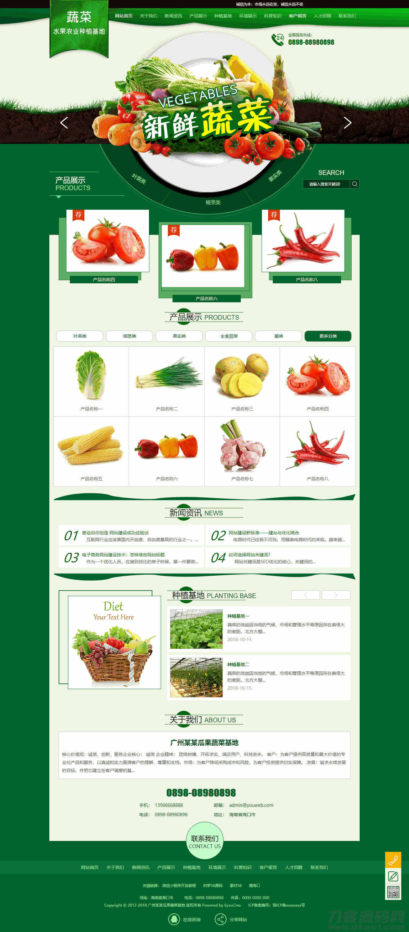 4爷免费源码网 » 易优cms瓜果蔬菜农业种植基地网站模板源码 带手机端