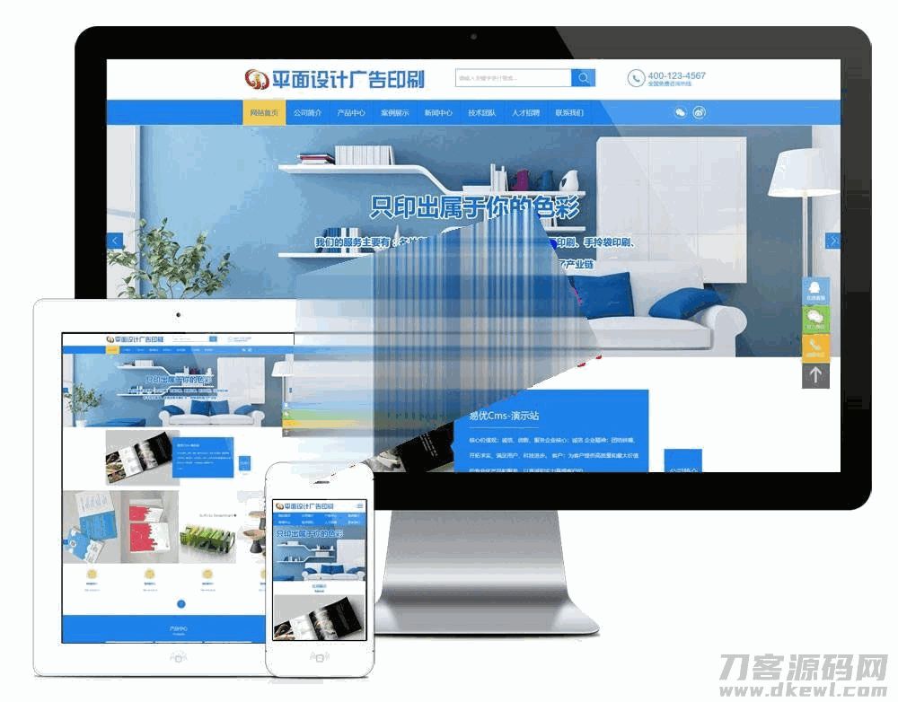 4爷免费源码网 » 易优cms蓝色平面设计广告印刷网站模板源码 带手机版
