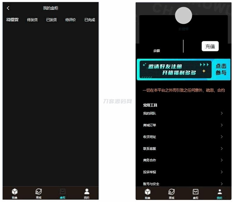 暗黑盲盒微信小程序源码 暗网盲盒商城开发 公众号二开版源码